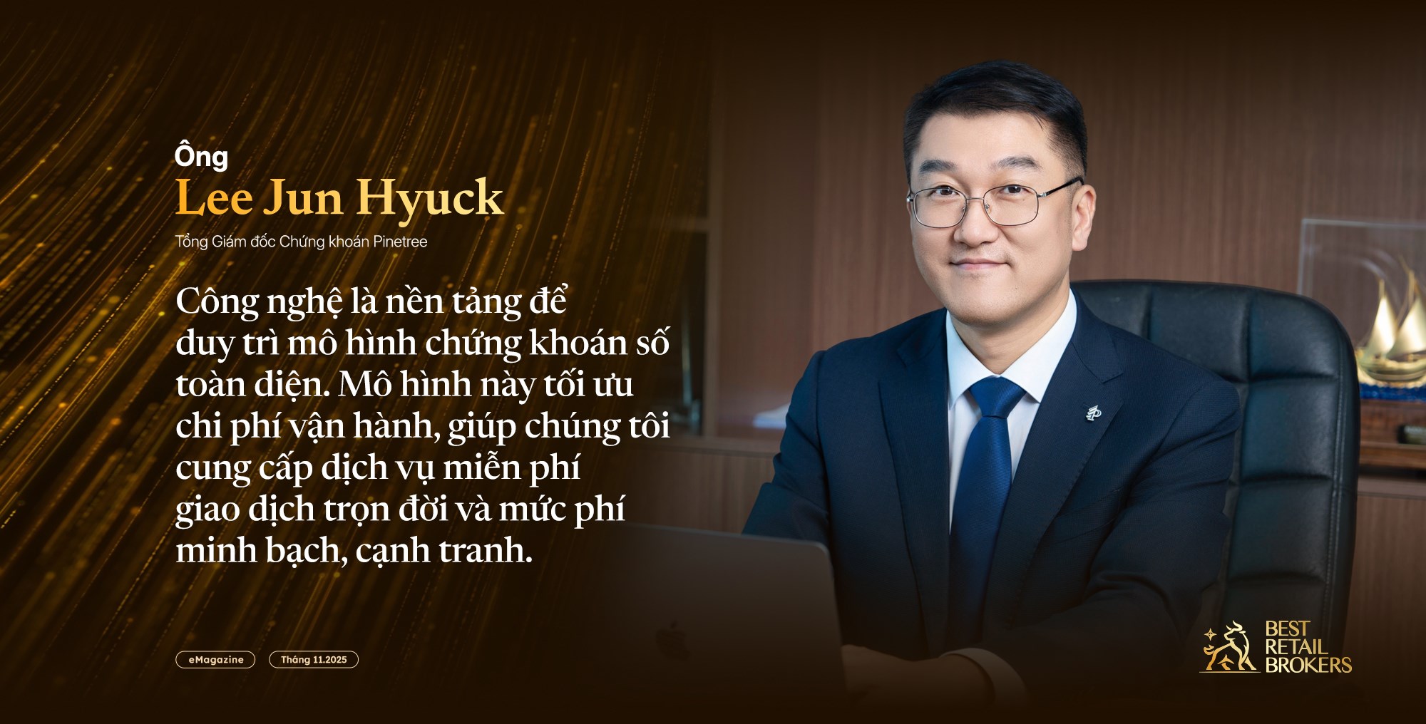 Ông Lee Jun Hyuck: Tháng 12/2019 là dấu mốc quan trọng khi Pinetree chính thức ra mắt tại Việt Nam. Chúng tôi đã lựa chọn một hướng đi tiên phong và táo bạo – chứng khoán số toàn diện: “không chi nhánh, không môi giới, chỉ có nền tảng số”. Đây vừa là sự đổi mới vừa là sự khác biệt, thể hiện khát vọng đồng hành cùng những nhà đầu tư độc lập – những người có tinh thần tự chủ.