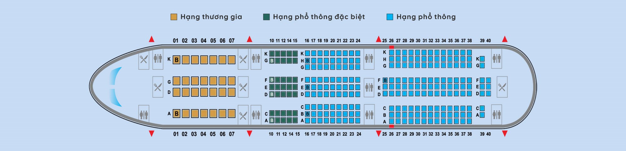 Sơ đồ ghế ngồi trên máy bay Boeing 787 của Vietnam Airlines chỉ thể hiện 3 hạng ghế, nhưng thực tế có nhiều hơn 3 hạng vé.