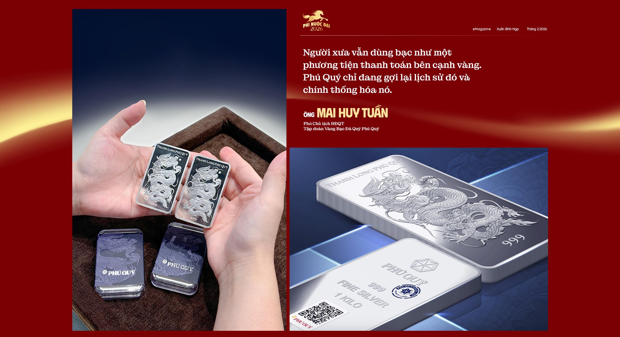 Ông Mai Huy Tuần: Tôi tin rằng điều này sẽ đến từ phía khách hàng nhiều hơn. Trong khoảng thời gian dài trước đây, nhiều cửa hàng vàng trên cả nước không bán bạc miếng nhưng thực chất câu chuyện giá trị tích trữ tài sản của bạc đã tồn tại hàng nghìn năm rồi. Người xưa vẫn dùng bạc như một phương tiện thanh toán bên cạnh vàng. Phú Quý chỉ đang gợi lại lịch sử đó và chính thống hóa nó.